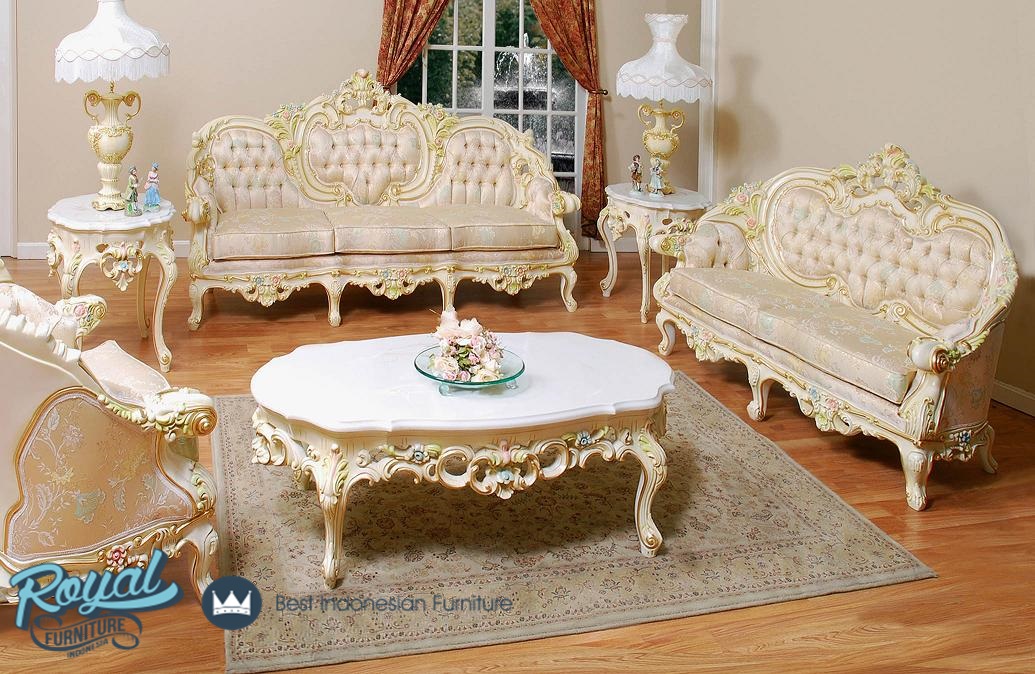 | Kategori | SET SOFA RUANG TAMU, SOFA TAMU KLASIK, SOFA TAMU MEWAH |