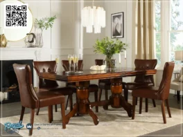 Furnitur Dining Set Meja Makan 8 Kursi Mewah Interior Klasik American Modern merupakan salah satu koleksi unggulan furniture Jepara yang dirancang untuk menghadirkan kemewahan klasik Eropa dalam ruang makan hunian eksklusif. Perpaduan desain elegan, ukiran detail khas Jepara, serta material berkualitas tinggi menjadikan set meja makan ini pilihan ideal bagi Anda yang mengutamakan estetika, kenyamanan, dan daya tahan jangka panjang.