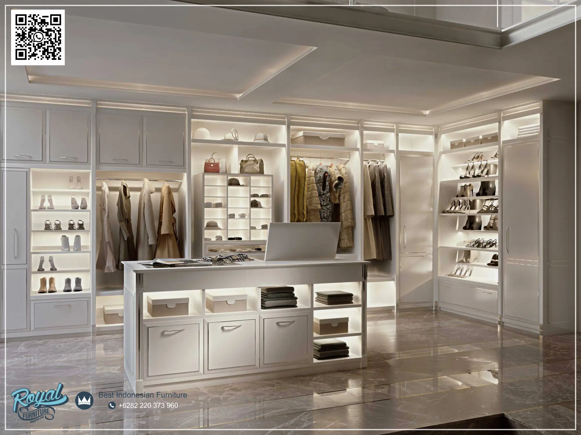 “Dirancang fungsional untuk pakaian, tas, dan aksesori, cocok untuk hunian modern maupun klasik dengan material premium.”