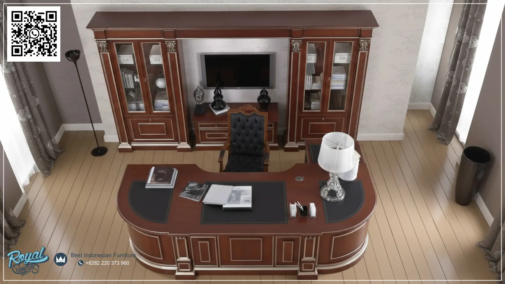 *Harga Hubungi CSRuang Meja Kerja Klasik Mewah untuk Jakarta – Simbol Otoritas, Prestise, dan Selera Tinggi Desain ruang kerja bukan sekadar tempat bekerja. Bagi para eksekutif, pemilik perusahaan, dan tokoh publik, ruang kerja adalah representasi karakter, otoritas, dan kelas sosial. Inilah mengapa desain meja kerja klasik mewah seperti pada gambar di atas menjadi pilihan utama bagi pasar… selengkapnya