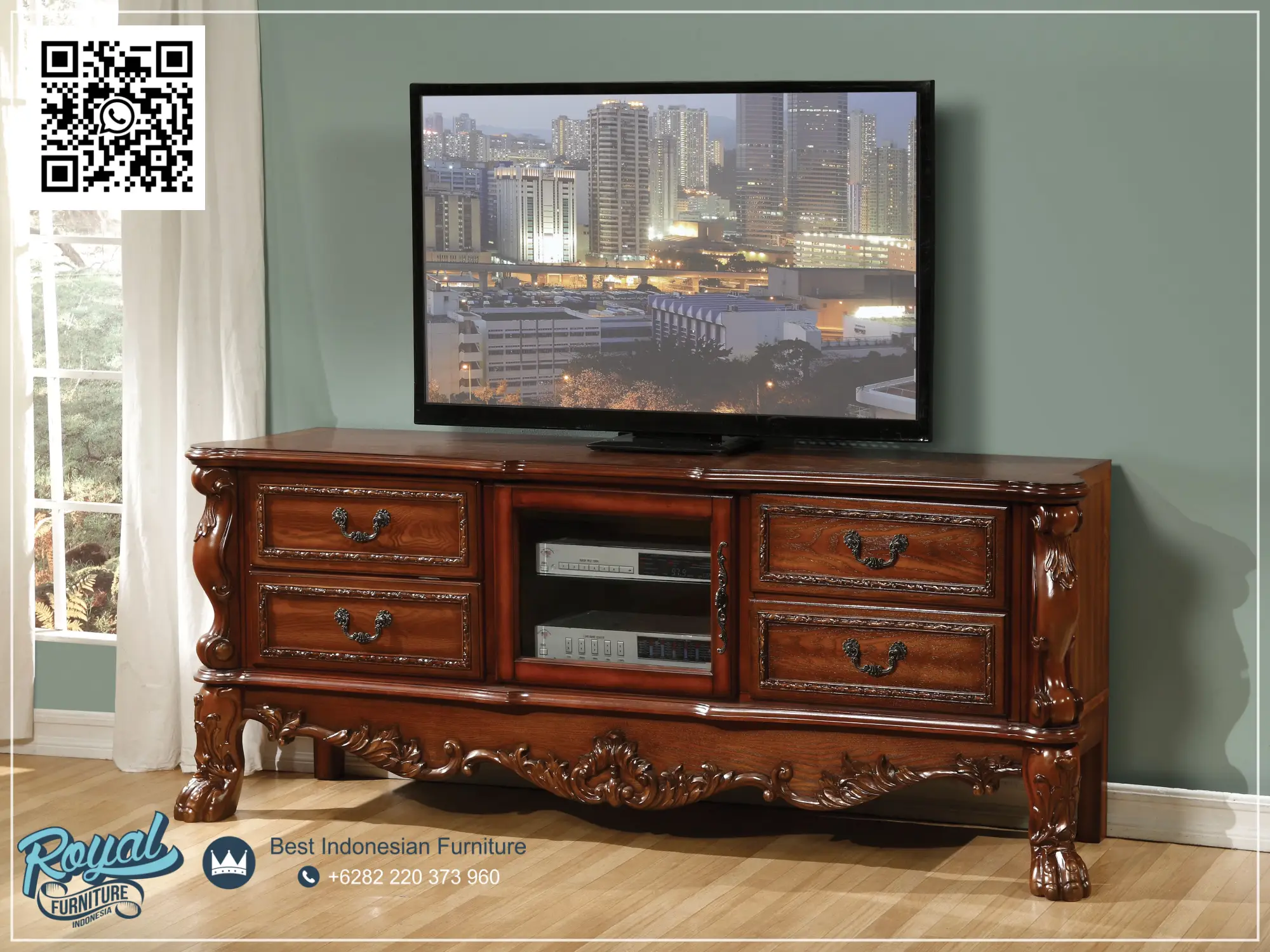 Dresden TV Stand Bufet Ukir Jati Jepara – New Meja TV Ukir Luxury Dresden