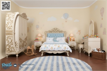 Hadirkan suasana bedroom child classic yang elegan dan berkelas dengan Set Kamar Anak Perempuan Mewah Klasik Jepara. Dirancang dengan detail klasik yang mewah, finishing warna silver-duco yang halus, serta sentuhan feminin yang lembut pada dekorasi ruang kamar anak perempuan.