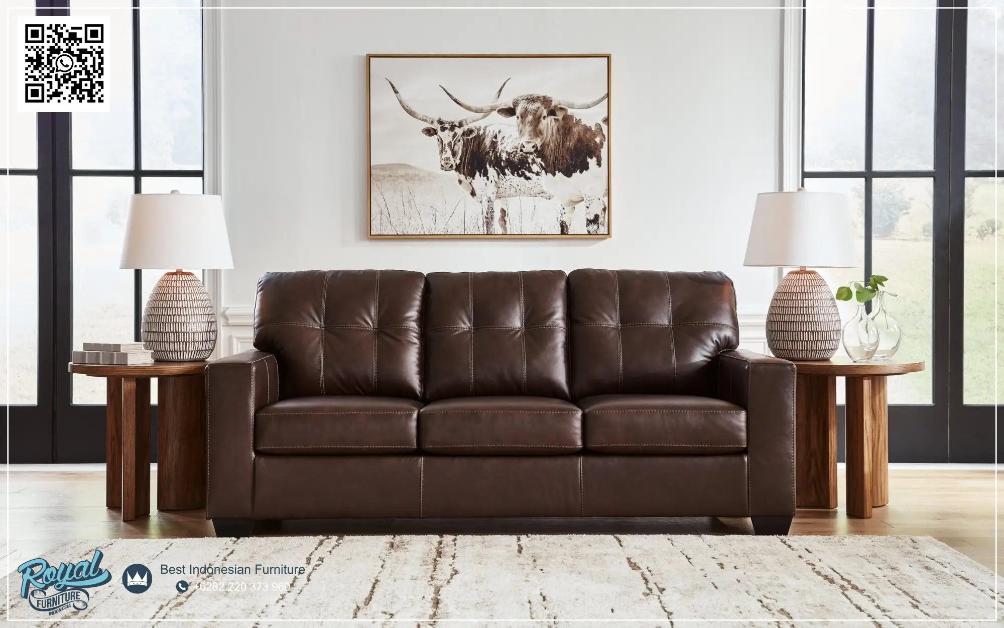 Tampilan Sofa 3 Seater Kulit Asli Mewah Jepara ini bukan hanya tempat duduk, tetapi juga pernyataan gaya yang mencerminkan karakter dan selera pemilik ruang tamu rumah maupun lobby hotel dan villa.