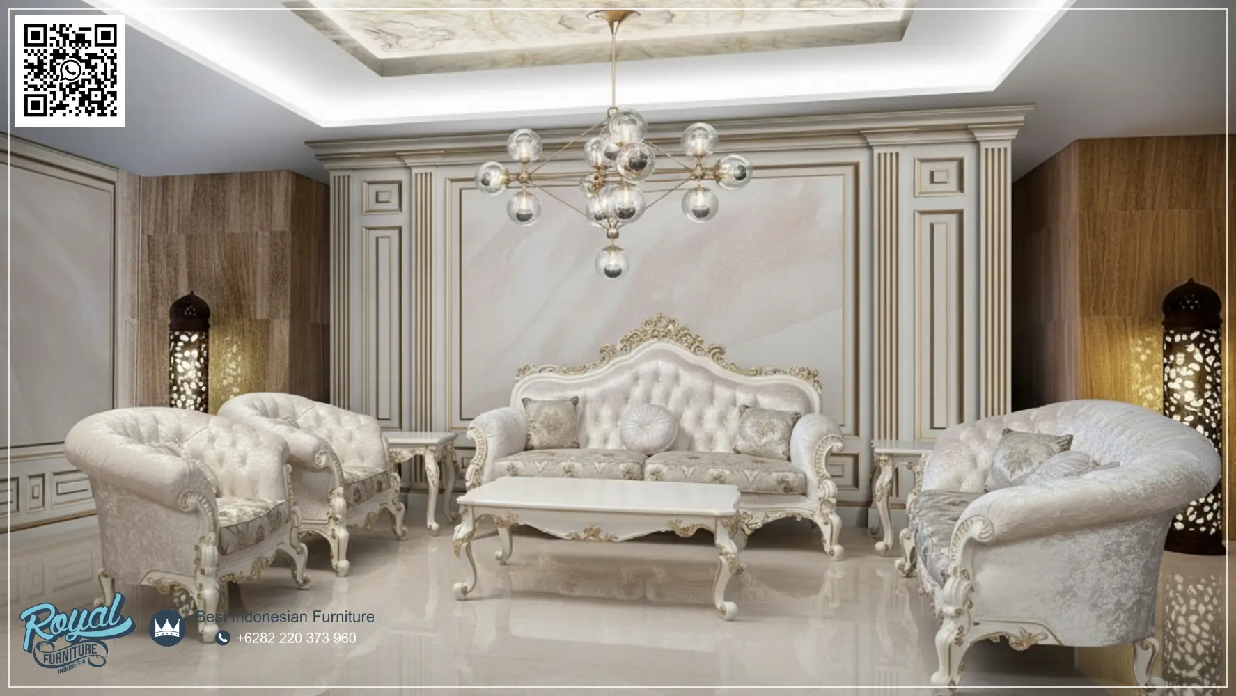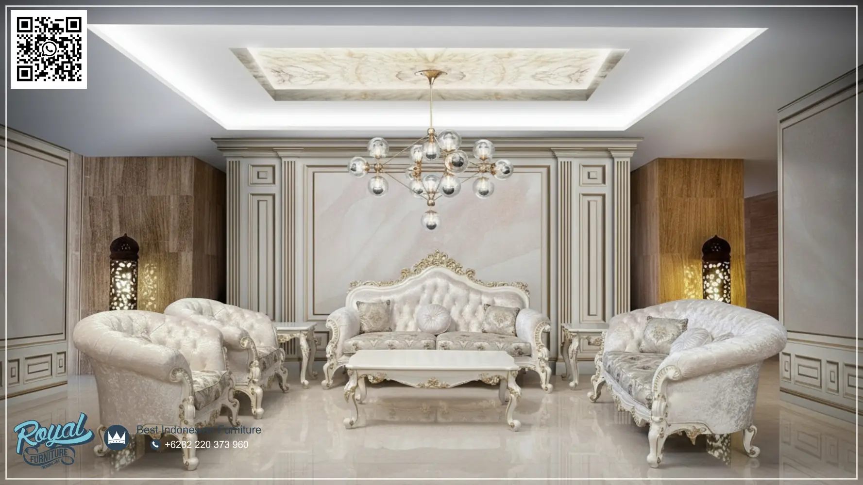 | Kategori | SET SOFA RUANG TAMU, SOFA TAMU KLASIK, SOFA TAMU MEWAH |