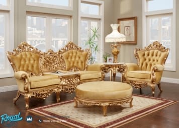 Sofa tamu ukir jepara warna emas mewah terbaru adalah produk sofa ruang tamu mewah yang di buat dengan mengedepankan kualitas terbaik serta konstruksi yang kuat untuk memberikan kenyamanan dan mempercantik tampilan ruang tamu dalam rumah Anda dengan ukiran khas produk mebel jepara yang sangat detail dan halus kami tawarkan untuk mengisi kebutuhan produk furniture di ruang tamu dalam rumah Anda, sofa tamu mewah ini merupakan produk dengan desain ukiran khas Furniture Jepara serta dilapisi finishing warna emas yang sangat cantik yang akan memberikan kesan mewah ini kami tawarkan untuk memenuhi kebutuhan produk furniture di ruang tamu dalam rumah anda sehingga akan memberikan kesan cantik, mewah dan elegan.