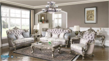 Model sofa yang memiliki ukiran dan gaya klasik untuk memberikan kesan elegan dan mewah pada ruang tamu. Sofa ini memiliki ornamen ukiran bunga dan juga kursi cinta yang memiliki lengan dan sandaran, berlapis busa, dan upholstery (kain dan kulit pelapis). Sofa berfungsi sebagai fasilitas duduk atau sarana santai untuk berbaring. Ciri-ciri sofa tamu ukiran mewah : Bergaya klasik, Memiliki ukiran jepara, Handle laci berornamen ukiran bunga memiliki meja untuk meletakkan makanan ringan, tissue, atau barang lainnya